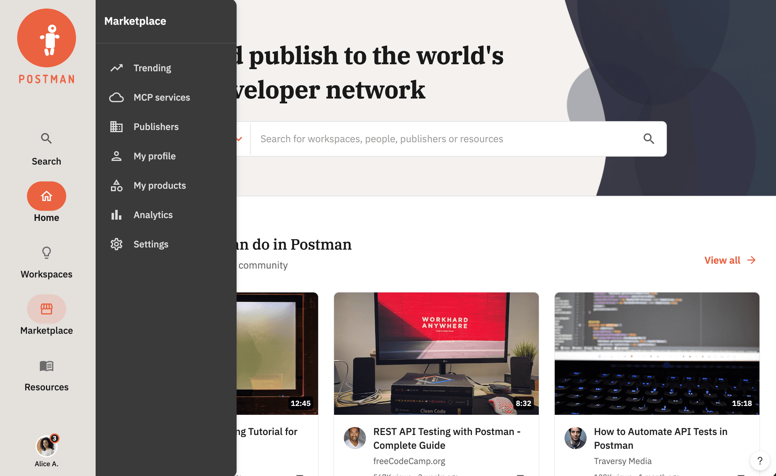 The Postman interface was previously optimized for internal collaboration, leaving the public marketplace without a global presence and forcing marketplace users to hunt for features. I replaced this fragmented experience with a centralized menu, overhauling the global navigation and sub menus. This structural shift created a high-visibility home where both marketplace consumers and publishers can access their specific features in one unified, high-trust location.