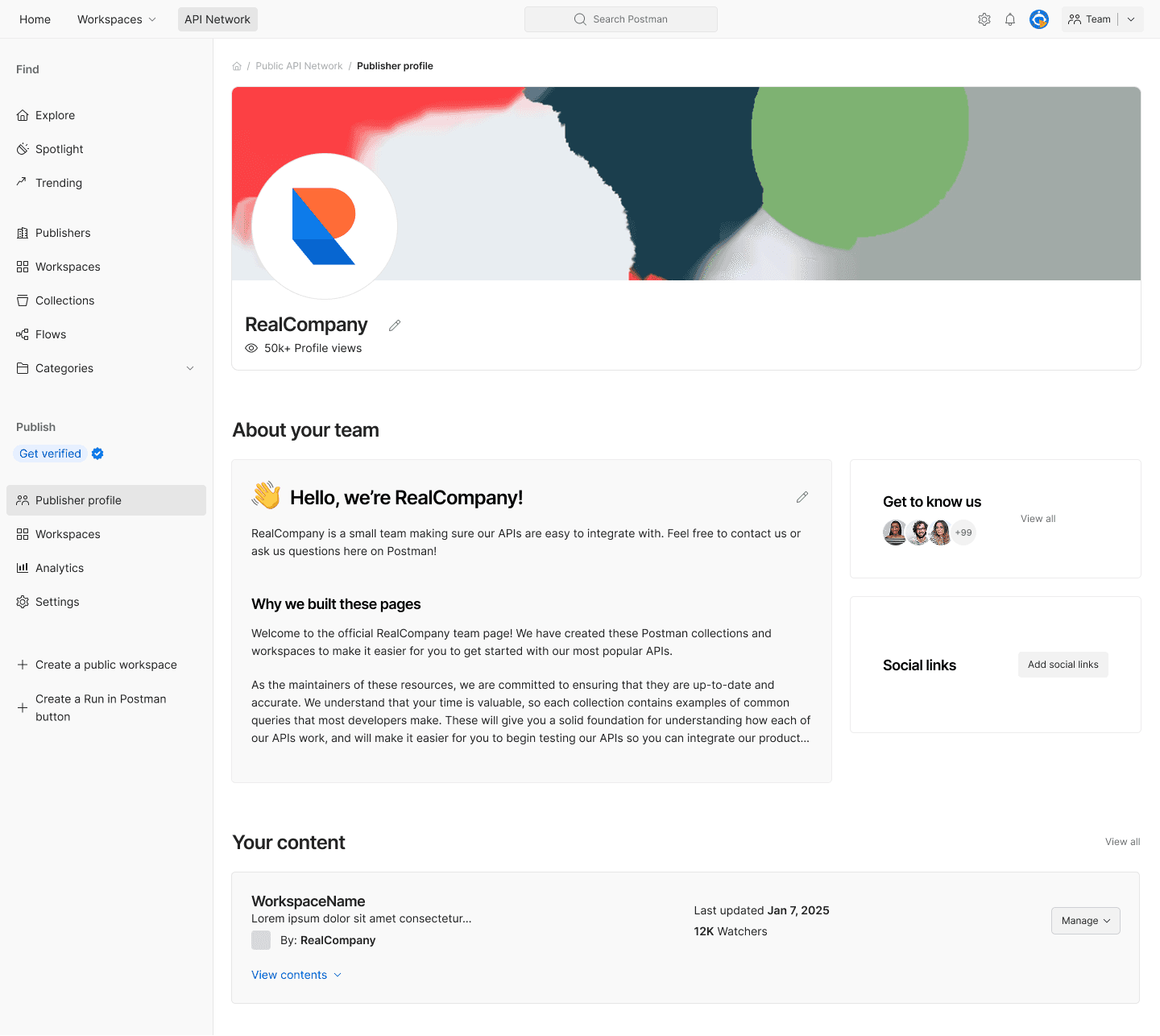 I led the redesign of Postman’s Public Network, transforming a fragmented feature set into a high-trust marketplace. By overhauling the navigation and establishing the platform’s first "Publisher" identity, I created a unified foundation for publishers. The new navigation enabled the launch of a verification system and set a new quality standard for the ecosystem. Within the first month, these strategic design shifts drove immediate growth, resulting in a 71% increase in active publishers and a 110% increase in new publishers.