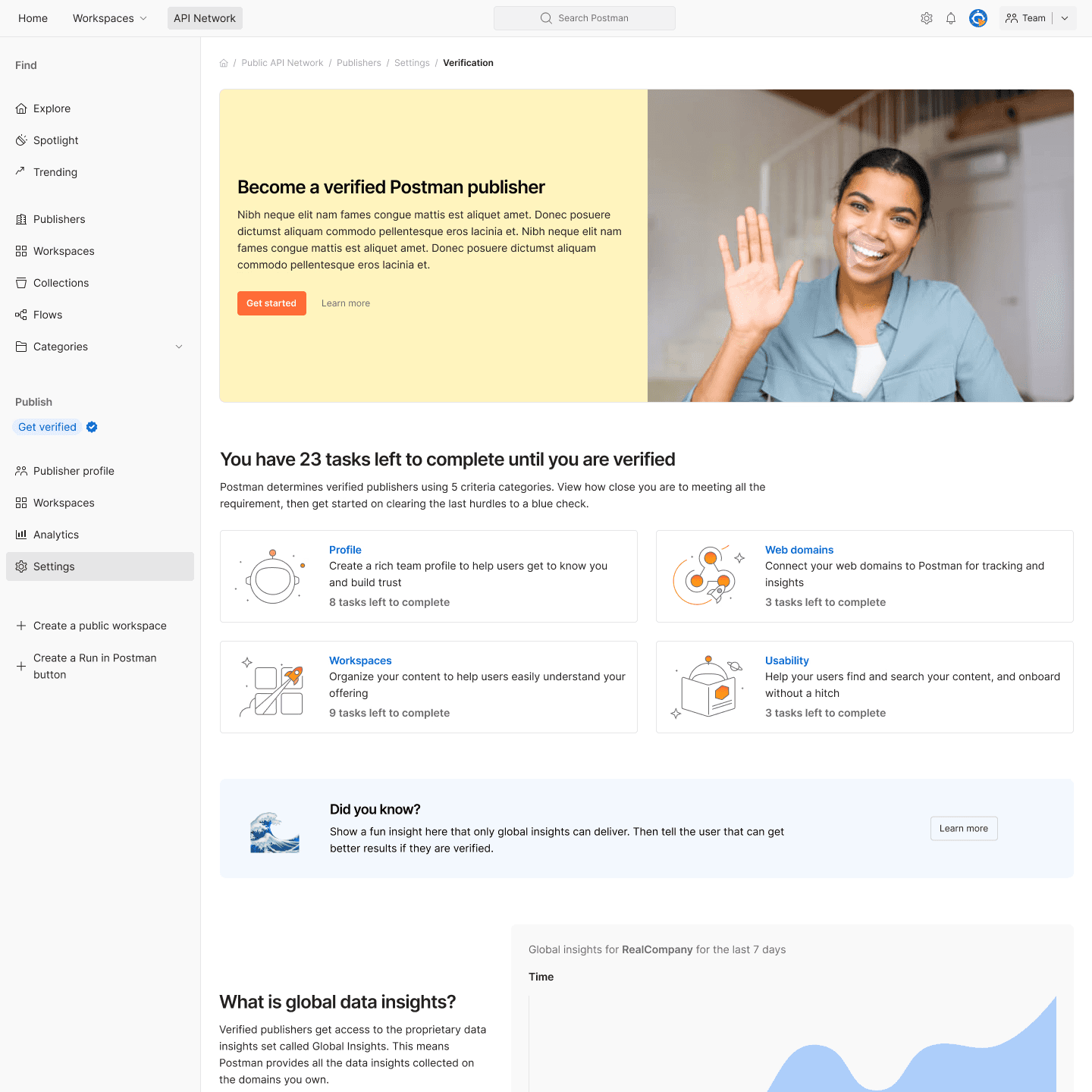 Since the marketplace was a small part of the Postman user base, we didn't go straight for a site-wide overhaul. Instead, we shipped a targeted MVP to support our updated information architecture, with grander plans schedule for later.